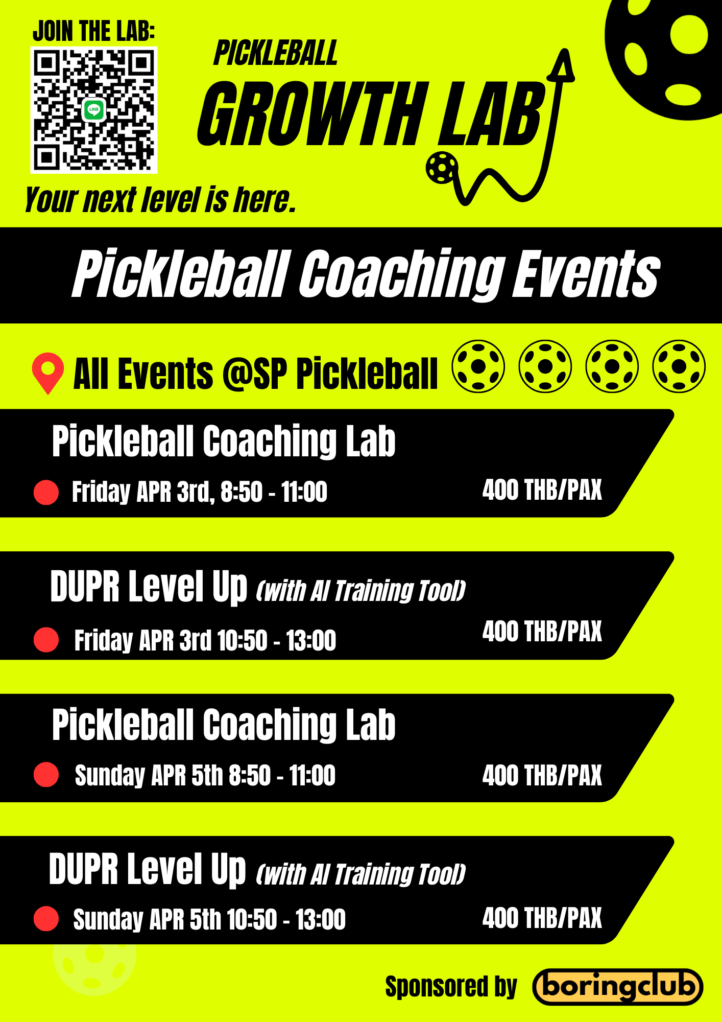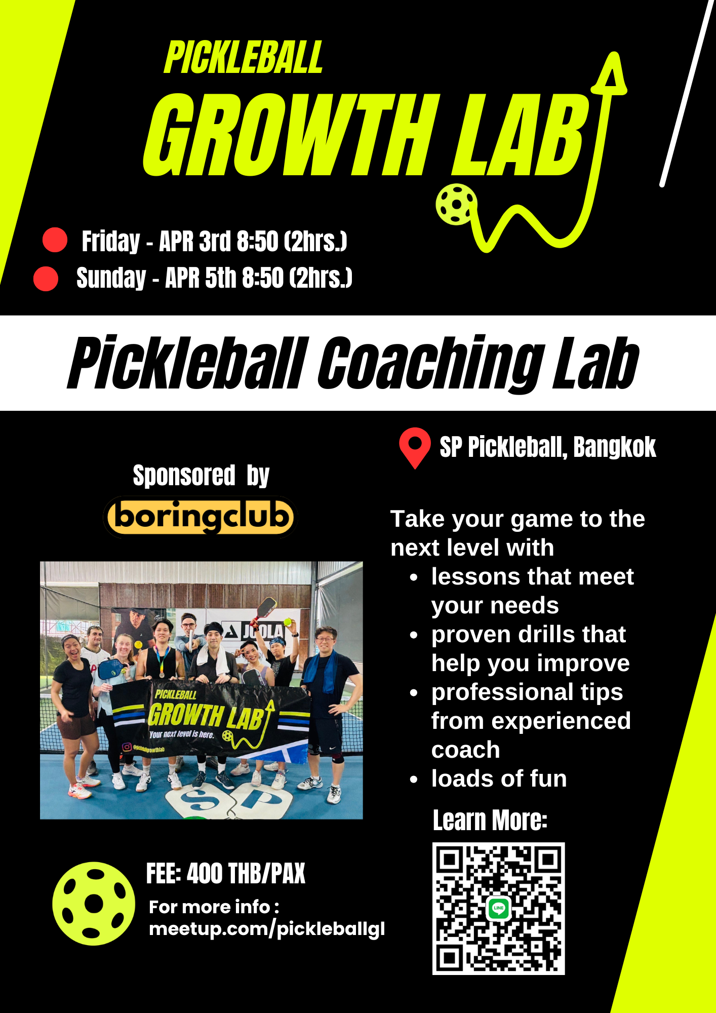 Pickleball Growth Lab was founded in 2026 by Jamey Wan, a pickleball enthusiast and and event organizer. He is also known to be the co-founder of the Boring Club, a large social club in Thailand for people to gather and meet others within the local community.